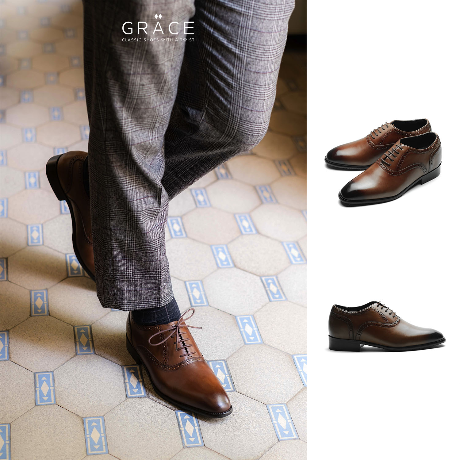 Ngoài ra Grace cũng có dịch vụ đóng giày: điều chỉnh last và cá nhân hóa cho các bàn chân có kích cỡ đặc biệt mang tới độ fitting hoàn hảo nhất với chi phí hợp lý.