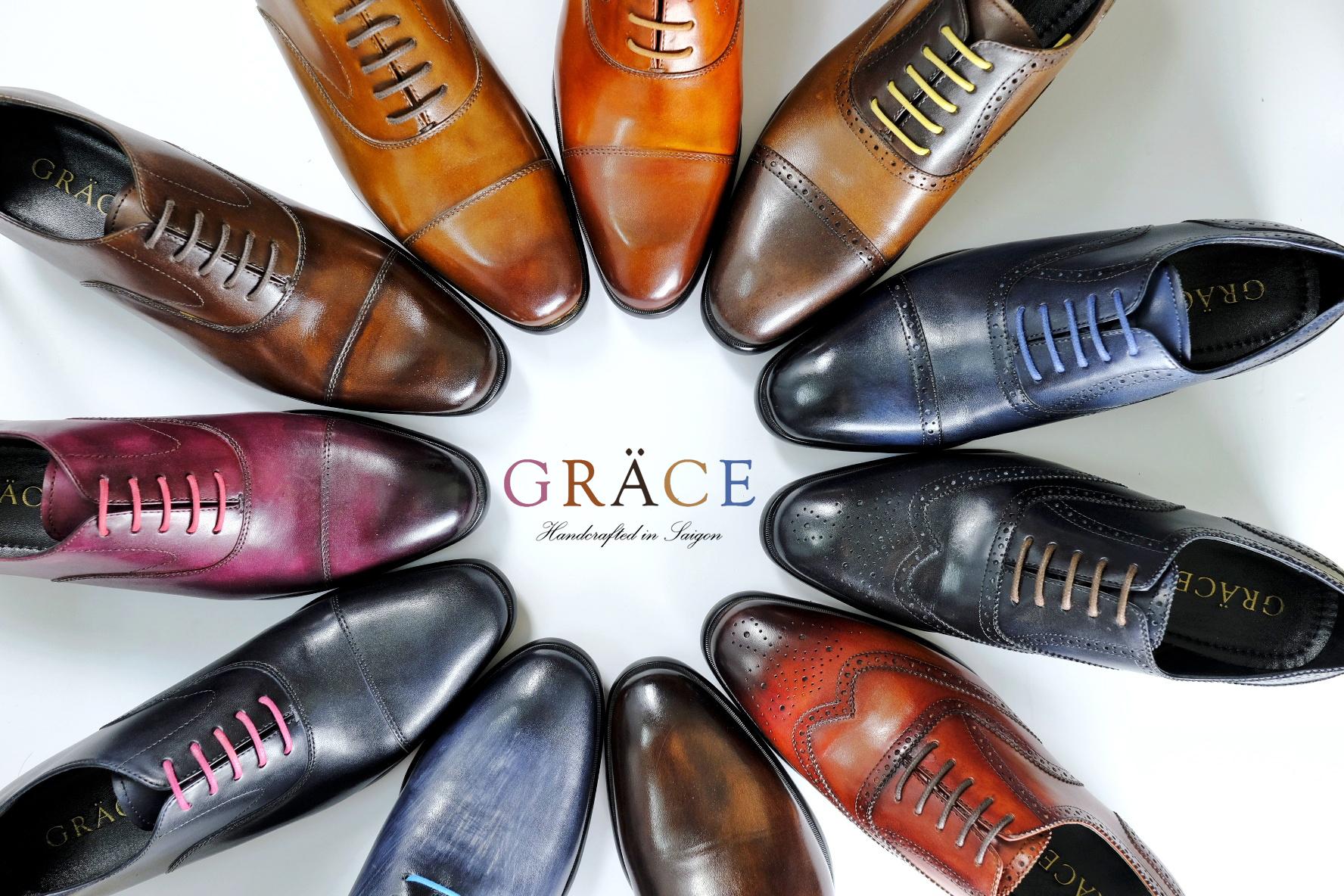 Giày của Grace được làm tay từ những chất liệu cao cấp và chú trọng vào chi tiết, nói cách khác, chúng tôi tự đặt chính mình vào đôi giày của các bạn nhằm mang đến một người bạn đồng hành siêu bền, siêu nhẹ, và siêu đẹp.